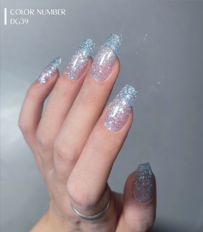 Inspired by the glittering quality of shattered ice, DVOK's Slushy Collection is a set of reflective glitter gels ranging from blue to pink hues.